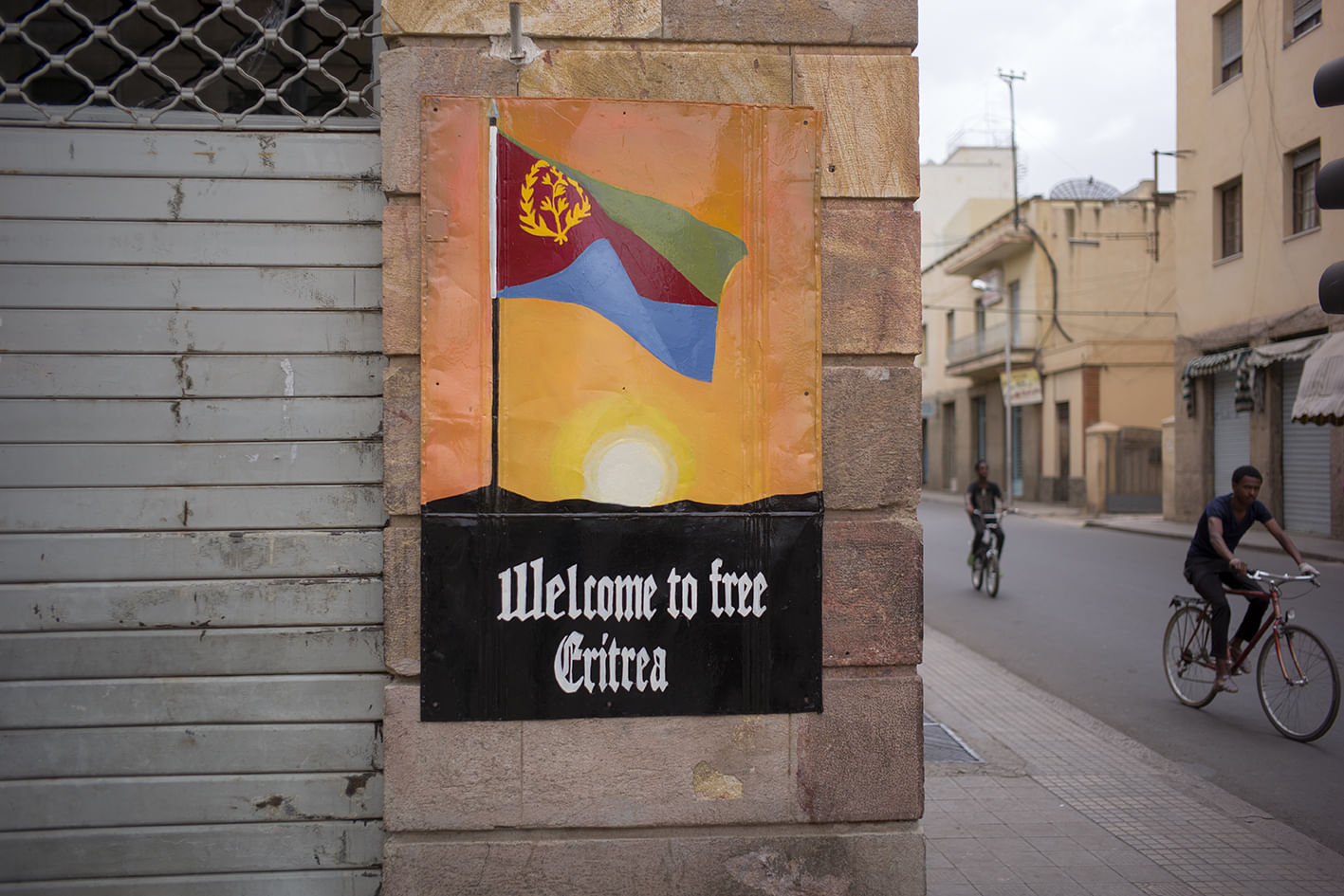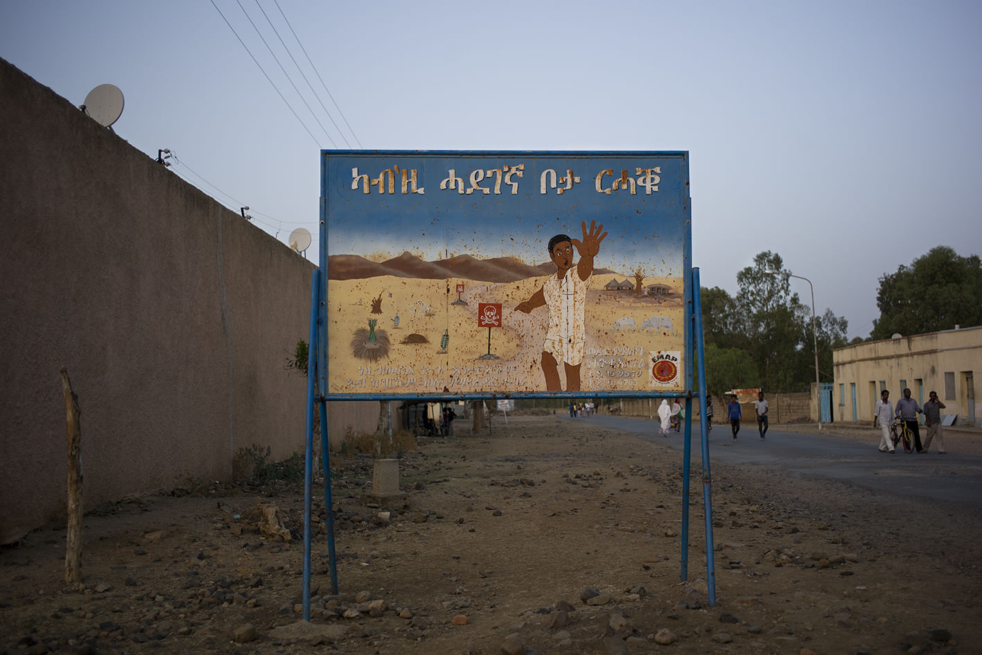 Wir fahren an einem Schild vorbei, das vor Landminen warnt. „Da drüben ist Äthiopien”, sagt er und zeigt auf einen Hügel am Horizont. „Ich bin sicher, sie haben euch vermisst.”