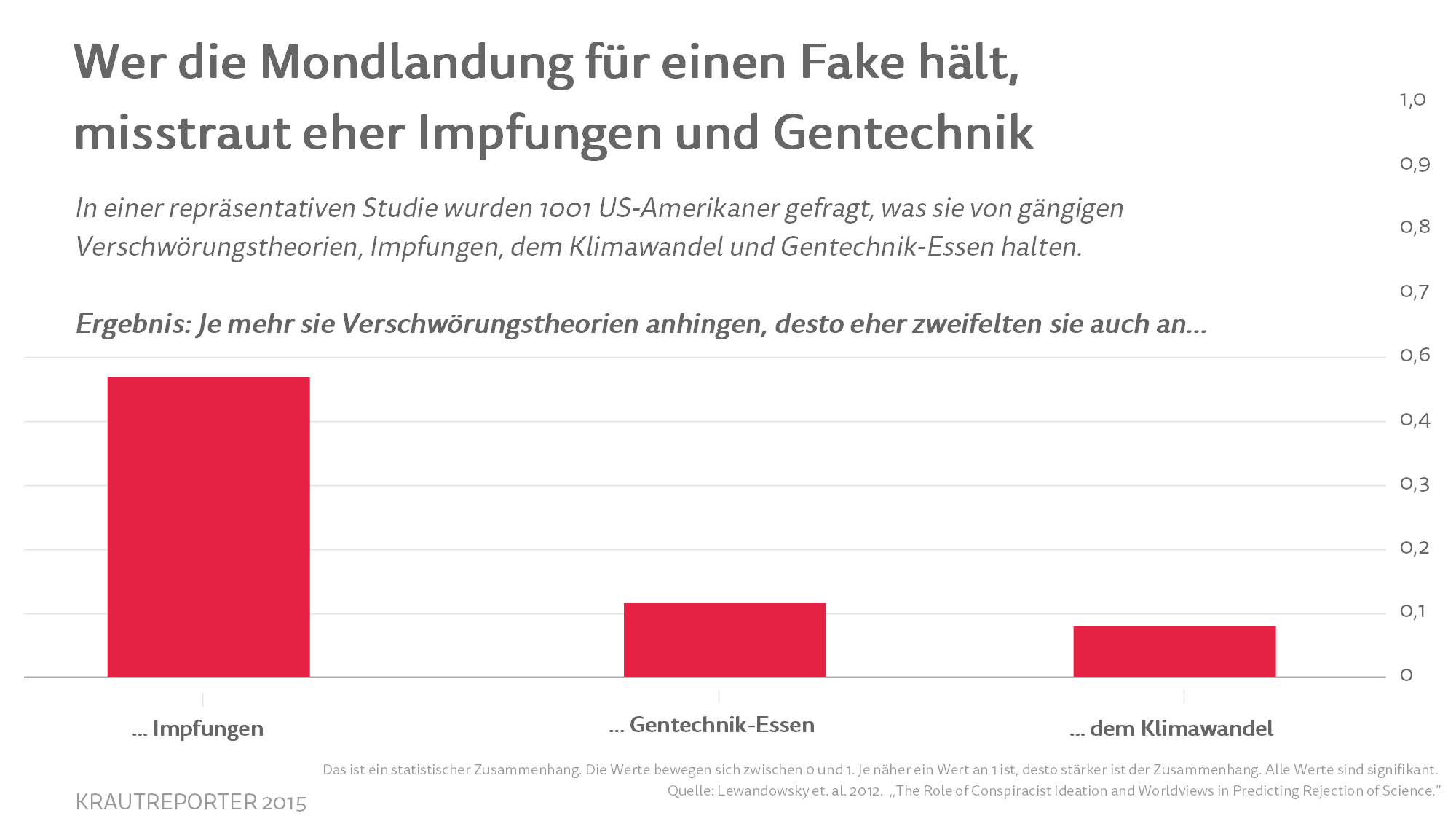Problematisch an der Studie ist nicht ihr Ergebnis, sondern wie es interpretiert werden kann durch Leser, die „Verschwörungstheorie“ nicht als wissenschaftliche Kategorie sehen, sondern als Kampfbegriff. So ist die Feststellung „Wer an Verschwörungstheorien glaubt, zweifelt auch eher an Impfungen” einleuchtend und gültig. Selbst die Aussage “Wer an Impfungen zweifelt, glaubt eher, dass die Mondlandung ein Fake war”, ist zulässig. Ihre Pauschalisierung ist es aber nicht. Weil jemand an Impfungen zweifelt, muss er nicht der Verschwörungstheorie anhängen. Für die Debatte in einer Demokratie ist es besser, die anders Denkenden nicht zu diffamieren, sondern zu überzeugen.
