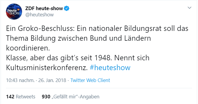 Auch die Heute Show machte sich anfangs über die Idee des Bildungsrats lustig:
