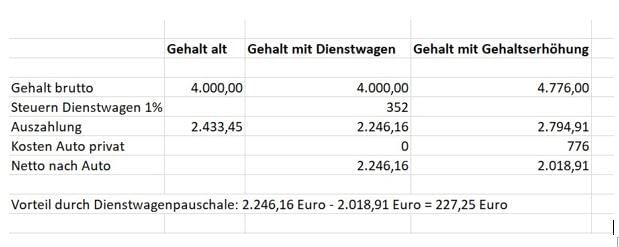 Dieses Rechenbeispiel lässt sich nur mit einigen Einschränkungen auf die Realität übertragen. In der Praxis würden die Arbeitgeber:innen nicht die Kosten des Autos eins zu eins als Gehaltserhöhungen auszahlen – denn durch Steuern und Lohnnebenkosten wird diese Summe brutto höher. Auf der anderen Seite würden Arbeitnehmer:innen privat nicht unbedingt solch ein teures, neues Auto kaufen und es nur fünf Jahre fahren.