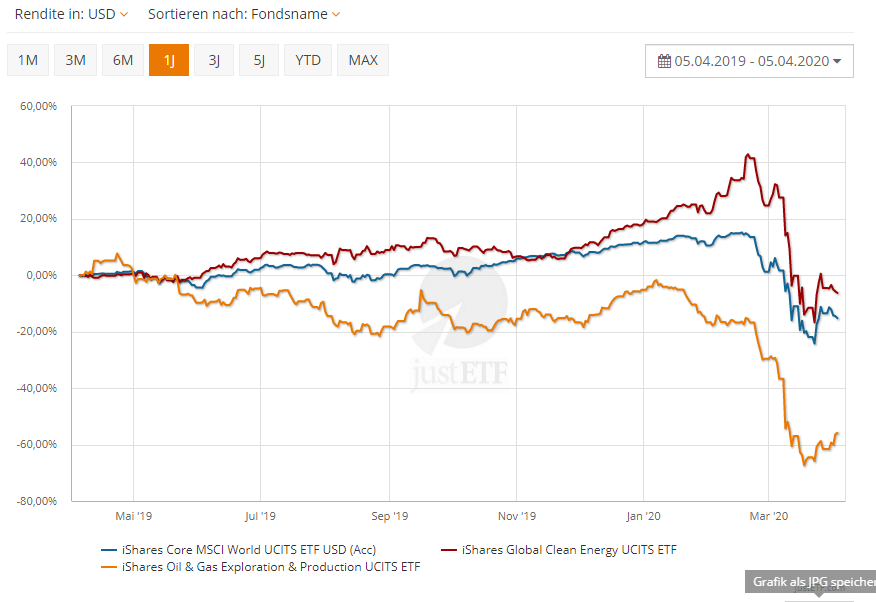 So sind die Anteilsscheine von Firmen mit erneuerbarer Energie im Vergleich zu einem breiten Schnitt durch alle Branchen und Länder und vor allem im Vergleich zu den Öl- und Gasfirmen gut durch den Crash gekommen. Das lässt nur einen Schluss zu: Das große Geld glaubt, dass Klimaschutz sehr gute Zukunftsaussichten hat.