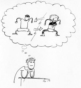 Irgendwann wurde mir klar, dass es mich wahrscheinlich schwul machte, wenn ich beim Masturbieren ans Ringen mit den Jungs dachte. Ich wollte aber nicht schwul sein. Also fing ich an, mir dabei Wrestling-Frauen vorzustellen, hauptsächlich „Madonna”. Diese Frau war damals der große Superstar; sie war auch ziemlich muskulös, so dass es keine große Veränderung war. In meiner Fantasie trug sie beim Ringen einen Einteiler, und ich stellte mir vor, dass wir in einem großen Ring waren und uns viele Zuschauer zusahen. Ich weiß nicht, welche Rolle das Geschlecht bei dieser Fantasie spielte; es ging vor allem um die Körperlichkeit, denke ich. Das Was war wichtiger als das Wer.