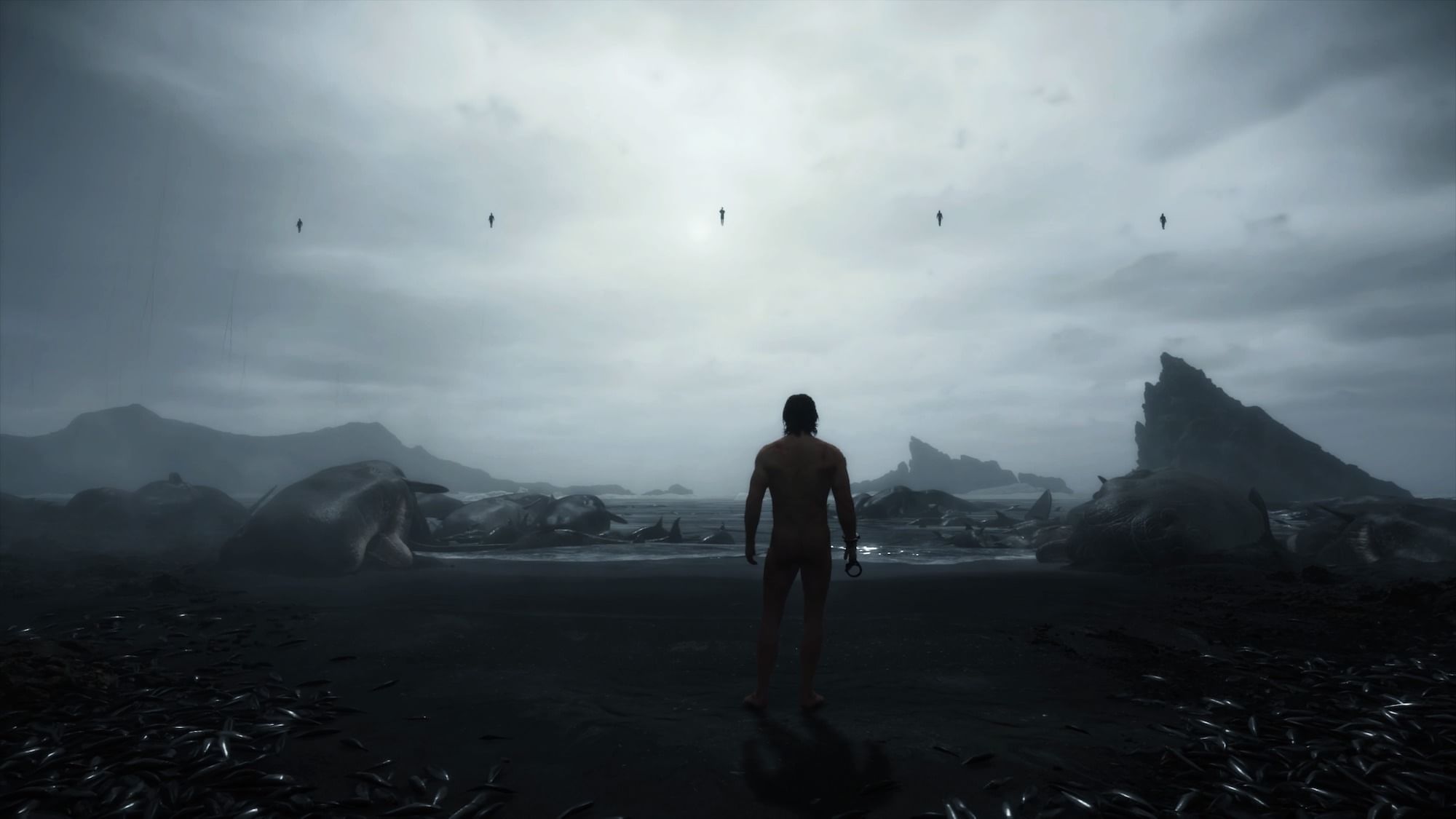 In „Death Stranding“ ist von der Welt nur mehr ein graues Ödland übrig. Die wenigen Menschen, die noch leben, haben sich isoliert. Vegetieren dahin in ihren Festungen aus Metall, haben den Anschluss verloren, wollen nur irgendwie überleben. Die Spieler sind die Vermittler zwischen diesen Menschen. Sie stellen Waren zu, verbinden die Menschen nach und nach wieder miteinander. Dabei legen sie weite Wege zurück, stapfen durch eine Welt ohne Leben, in der der Regen aus Säure besteht und an allem frisst, was organisch ist.