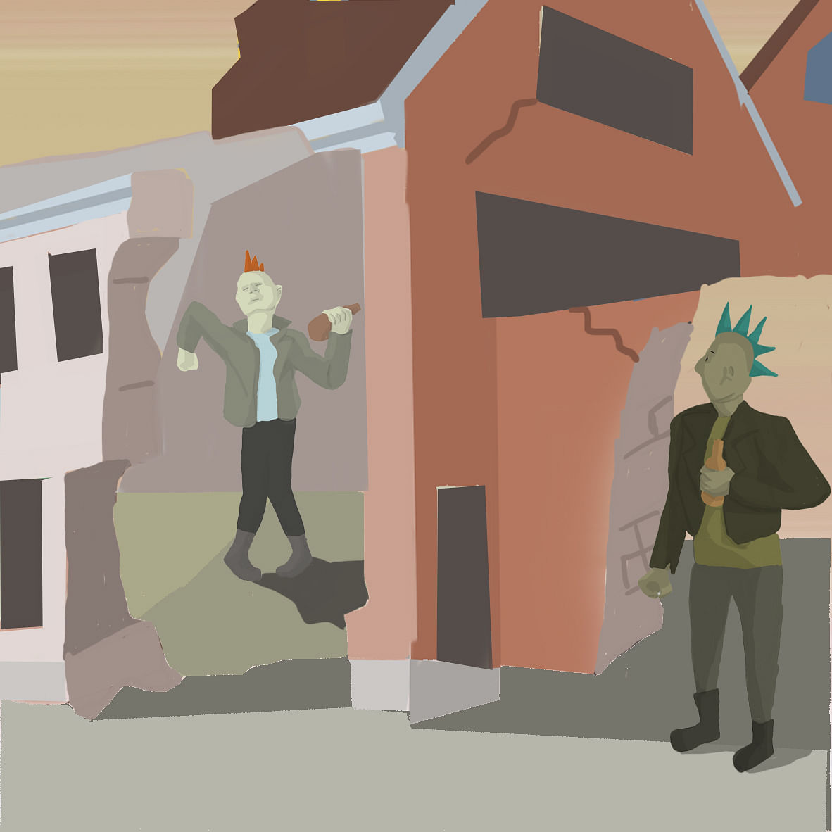 Jetzt ist der Tempel der dörflichen Feinkost eine Ruine. Fassungslos schaut Elizavetha dem wilden Treiben der Punks zu. Was ist da passiert? Das kann nicht sein!