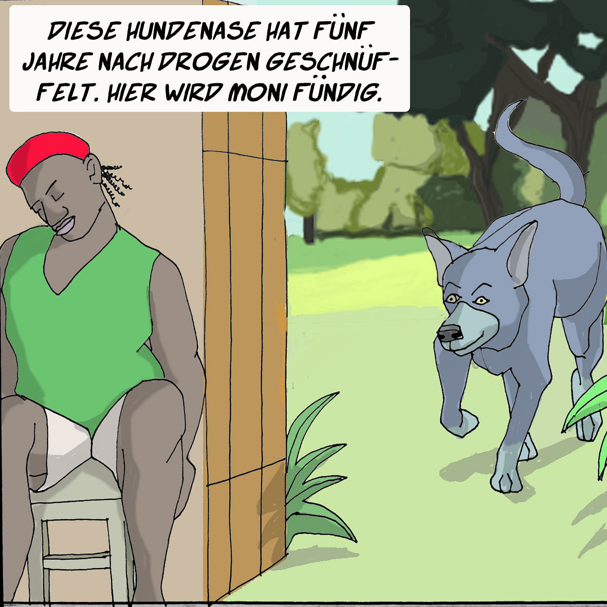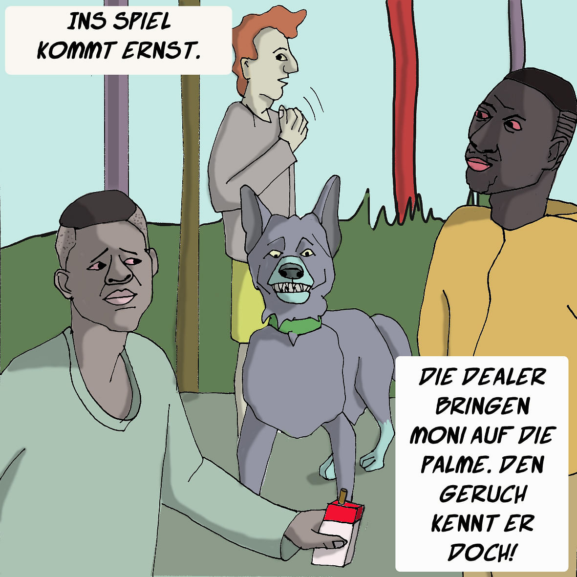 Die Dealer der Hasenheide bringen Moni aus dem Trab und damit zurück in seine alte Praxis. Eigentlich sollte das hinter ihm liegen. Sagen wir, es sei eine Wiederaufnahme, ein letztes Mal, dass der alte Schinken auf die Bühne von Monis Leben kommt, aus der Zeit, als er noch Spitz hieß.