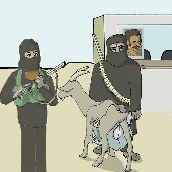 Was sonst noch geschah: Hier sehen wir, wie der geile Zwerg, erstaunlich gut versteckt, auf dem Weg zu seiner Rache an Zara das Kalifat des Islamischen Staats durchquert. Die Gotteskrieger erkennen seine List nicht, obschon sie für die Taliban nach ihm fahnden.