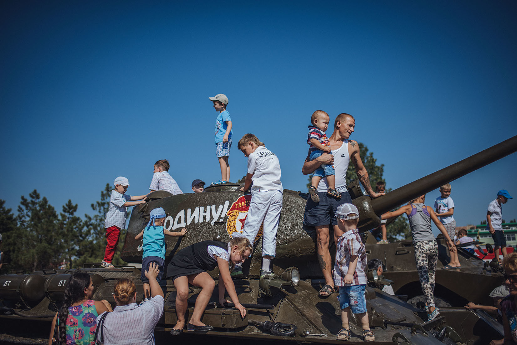 Als wir unser Mittagessen beendet haben und das Restaurant verlassen, brennt die Sonne glühend heiß. Auch wenn man berücksichtigt, dass Samstag ist, sind relativ wenige Menschen unterwegs. Boris glaubt, dass viele nach Odessa und an den Strand gefahren sind. Ich versuche, das Leben auf der Straße mit der Kamera einzufangen. Wir kommen an der beeindruckenden Parade-Straße vorbei. Dort inszeniert das Regime jedes Jahr einen riesigen Militäraufmarsch, um den Nachbarn mit dem riesigen Waffenaufgebot Angst einzujagen.