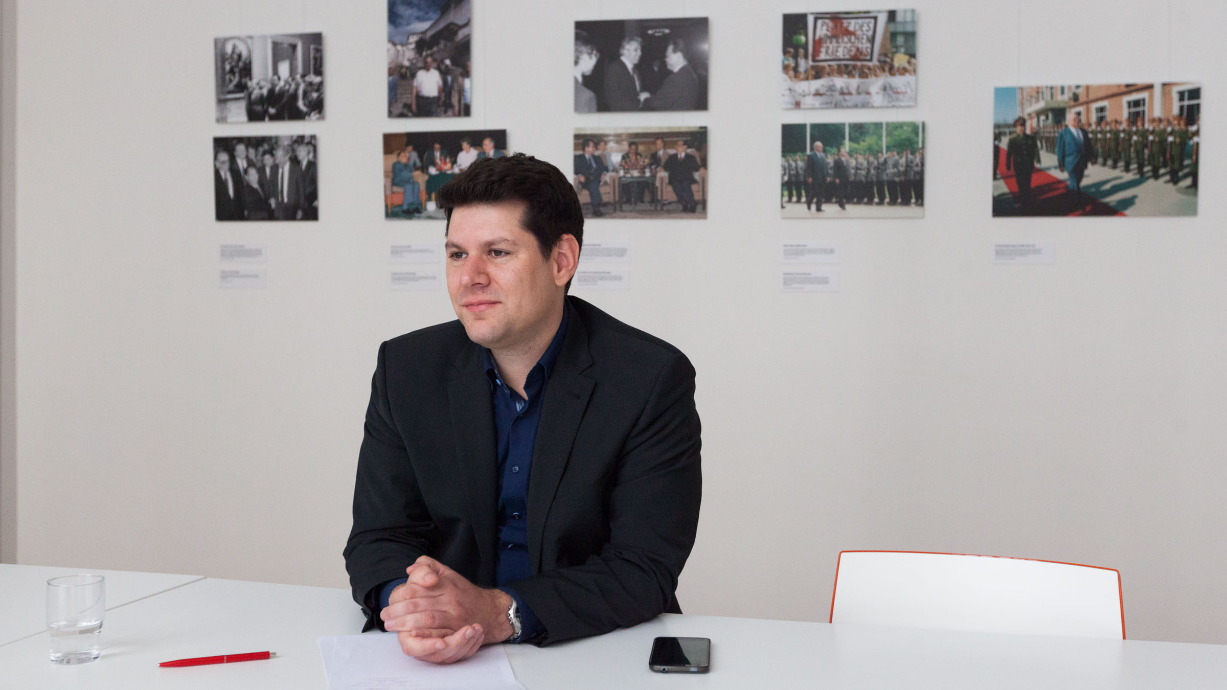 Matthias Stepan (rechts) im Gespräch mit Krautreporter Christian Gesellmann