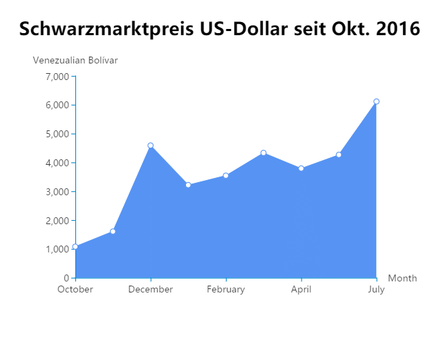 Damals war die Inflation schon immens hoch, aber kein Vergleich zu dem, was noch kommen sollte. Über tausend Prozent waren es im Jahr 2017. Ein Jahr darauf betrug die Inflation sogar 1,3 Millionen Prozent. Venezuela ist damit das Land mit der höchsten Inflationsrate weltweit, mit Abstand. Für das Jahr 2019 wird sie auf bis zu 10 Millionen Prozent geschätzt.
