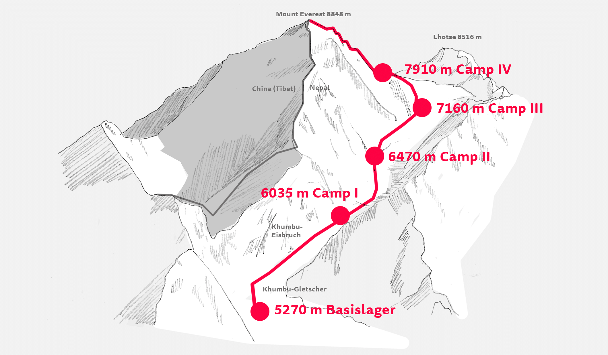 „Wir mussten unsere Arbeitgeber wieder überzeugen, uns so lange freizustellen. Diesmal umso mehr, weil jeder wusste, es gibt wirklich ein Risiko. Es kann sich keiner vorstellen, wie viel Vorbereitung da drin steckt. Wie viel Disziplin, wie viel hartes Training. Die Ausrüstung, die Planung. Und wenn du vor Ort bist, musst du gesund bleiben. Du läufst da zwölf Tage hin. Das Klima, das Essen, die Temperaturen. Wenn du eine Erkältung bekommst, ist es vorbei. Wenn du einmal im Basecamp bist, ist die Luft so dünn, da kannst du das nicht mehr auskurieren. Soviel Druck und Stress, der sich über ein Jahr da aufbaut. Ich habe Jahre darauf gespart, auch für die Ausrüstung, die du dir kaufen musst. Das zehrt alles an einem.“