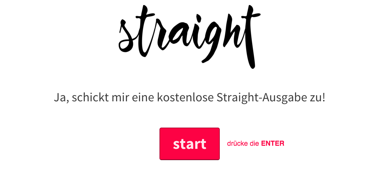 Krautreporter-Mitgliedern schicken wir eines von 30 Exemplaren der neuen „Straight“-Ausgabe kostenlos zu. Zum Bestellen logge dich bitte ein, klicke auf das Symbol rechts neben diesem Absatz und hinterlasse deine Adresse.